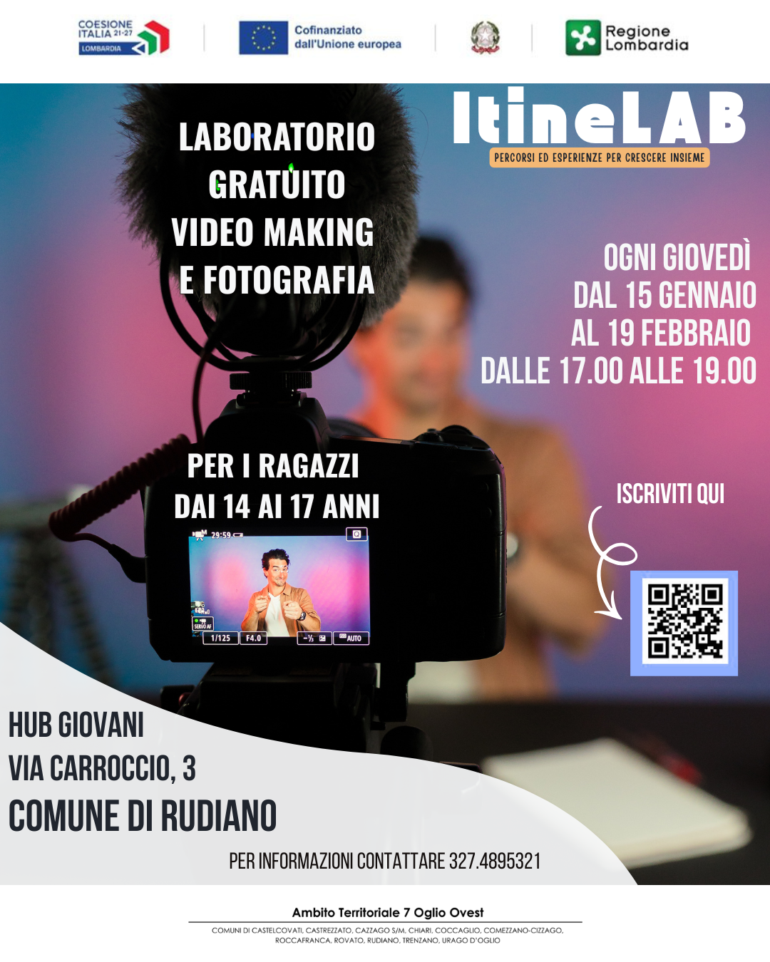 Bando regionale "Sprint ! Lombardia insieme" - Progetto Itinelab: laboratori gratuiti destinati ai ragazzi dai 14 ai 17 anni dell'ambito Oglio Ovest.