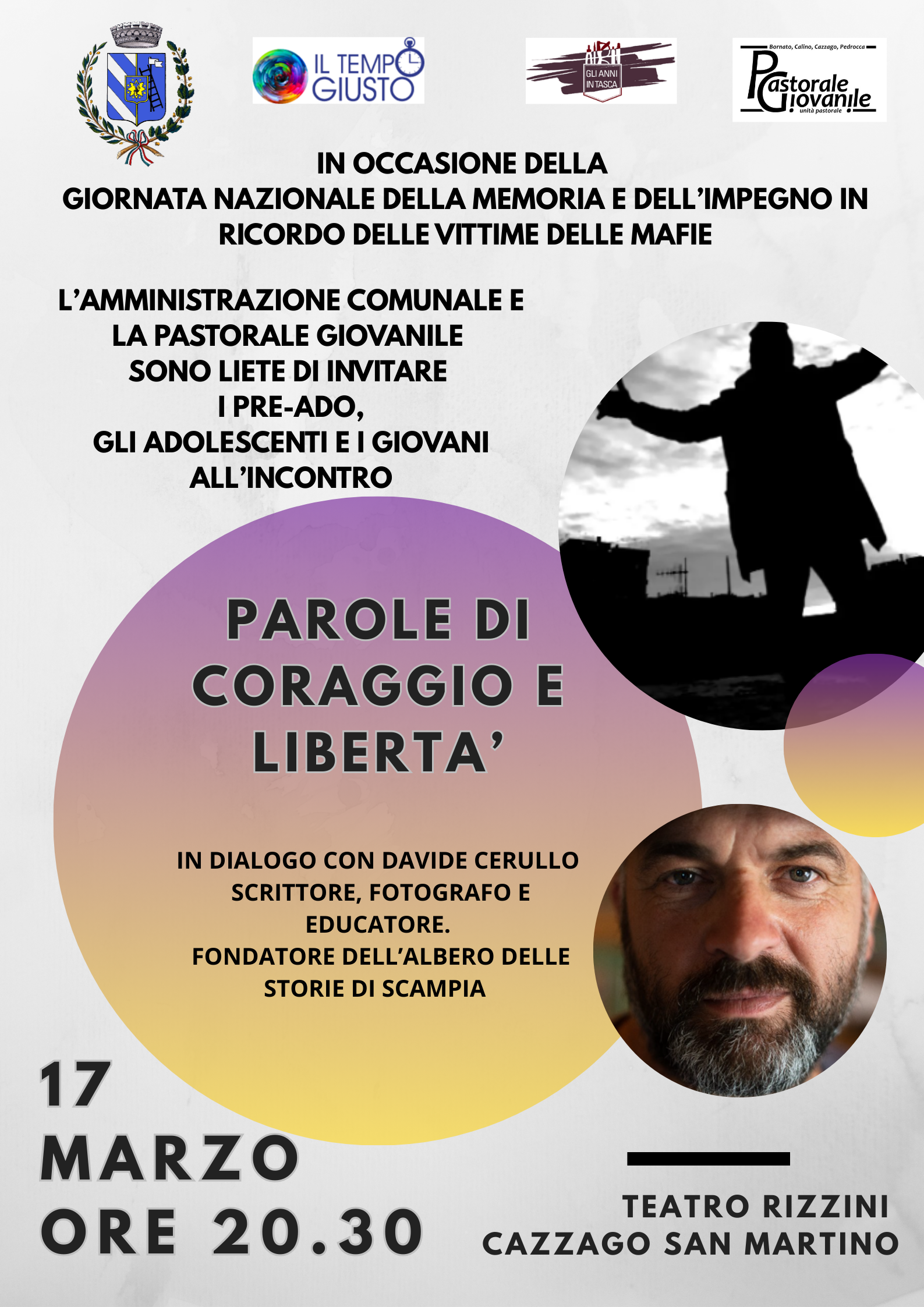 17 Marzo h 20.30 presso il Teatro Rizzini: "Parole di coraggio e libertà" - incontro dedicato ai preadolescenti, agli adolescenti e ai giovani