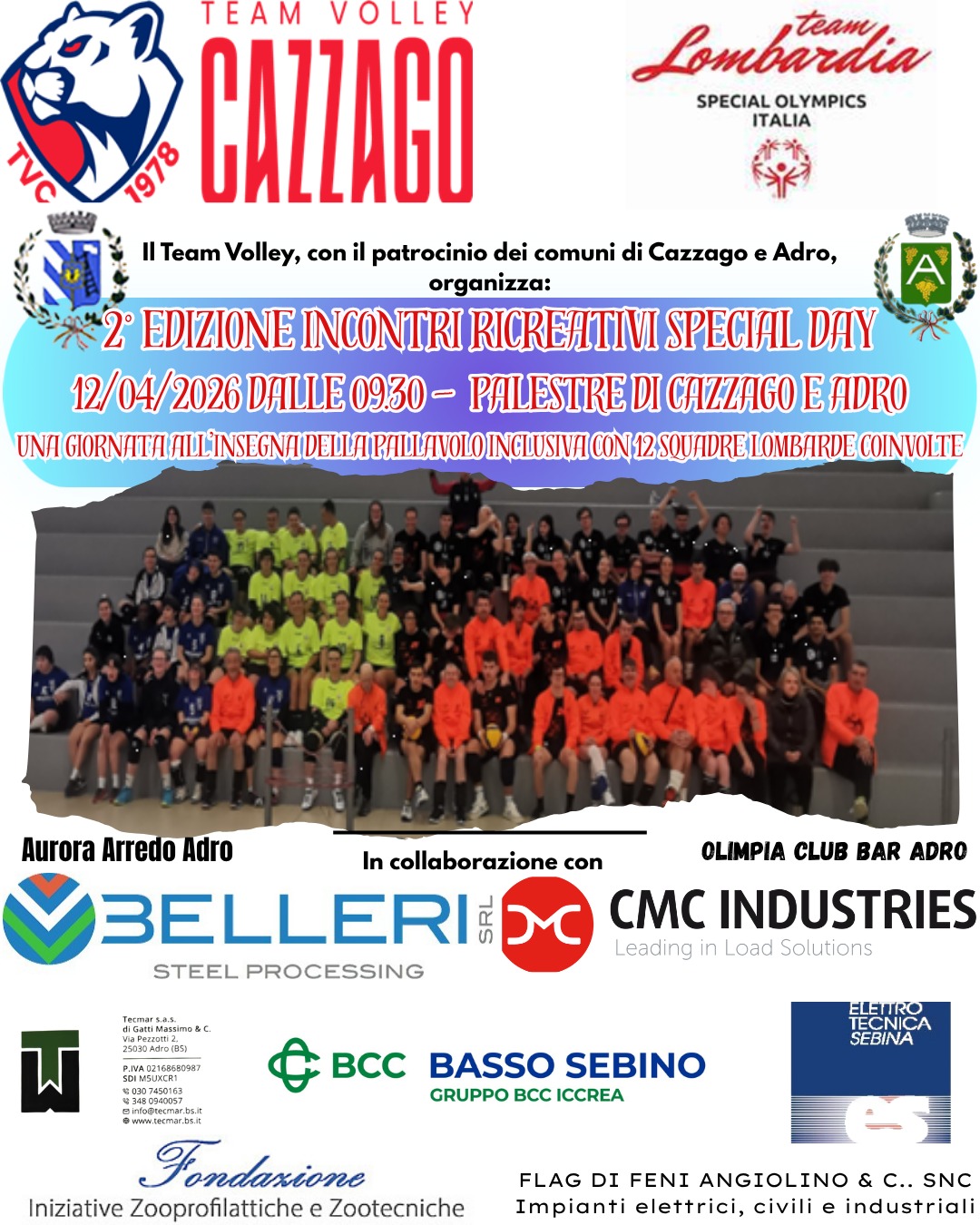 2° edizione incontri ricreativi special day presso le Palestre di Cazzago San Martino e Adro : una giornata all'insegna della pallavolo inclusiva con 12 squadre lombarde coinvolte
