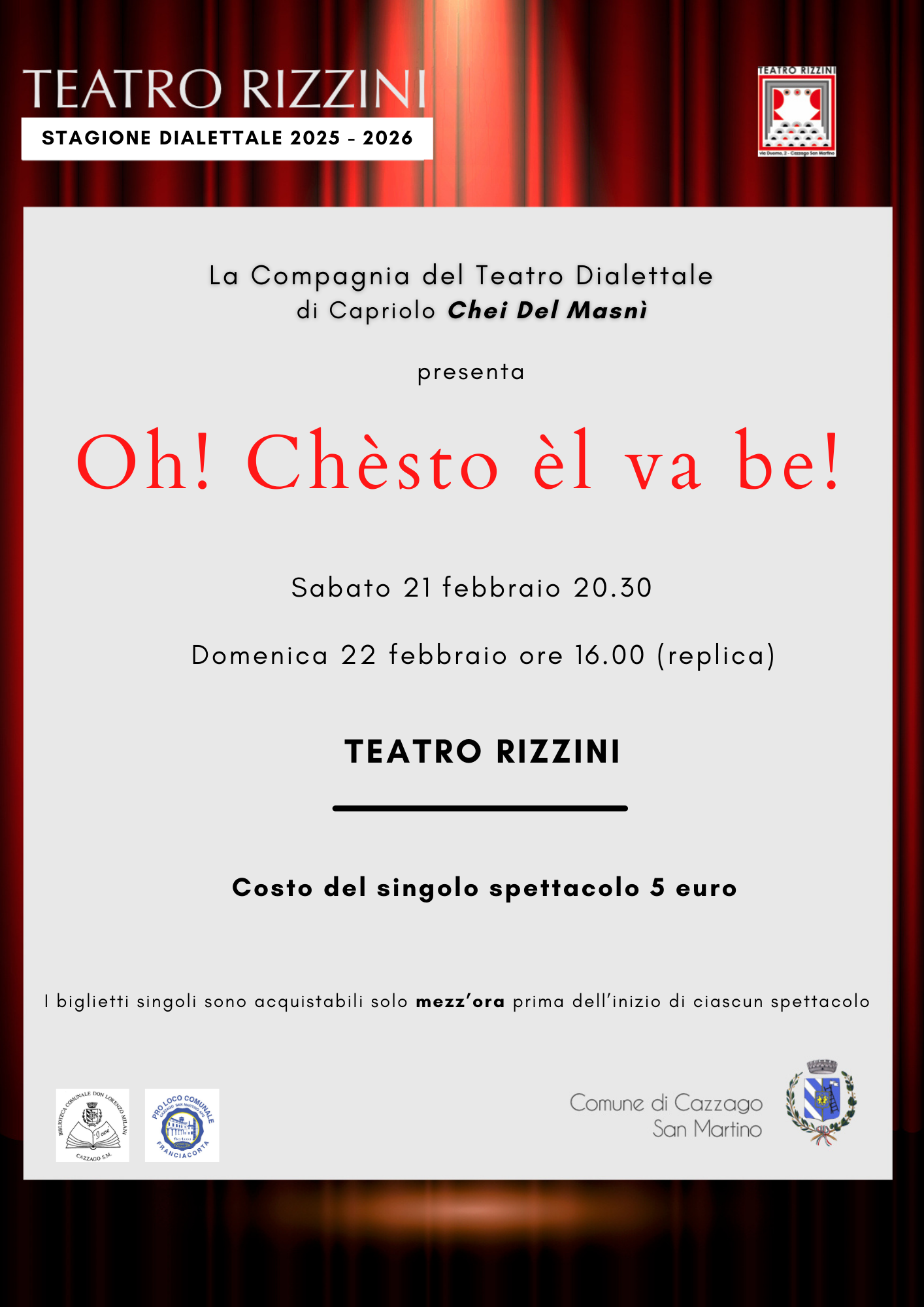 Rappresentazione teatrale dialettale Oh! Chèsto èl va be! della Compagnia teatrale Chei del Masnì di Capriolo