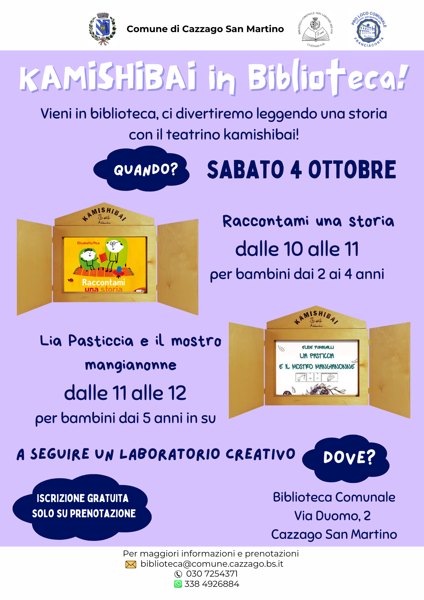 Sabato 4 ottobre dalle 10.00 presso la Biblioteca comunale
