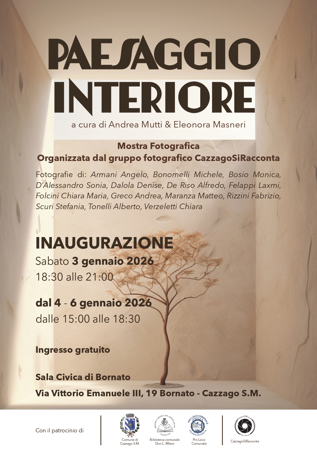Paesaggio interiore : mostra fotografica organizzata dal Gruppo fotografico CazzagoSiRacconta, a cura di Andrea Mutti & Eleonora Masneri presso la Sala civica di Bornato