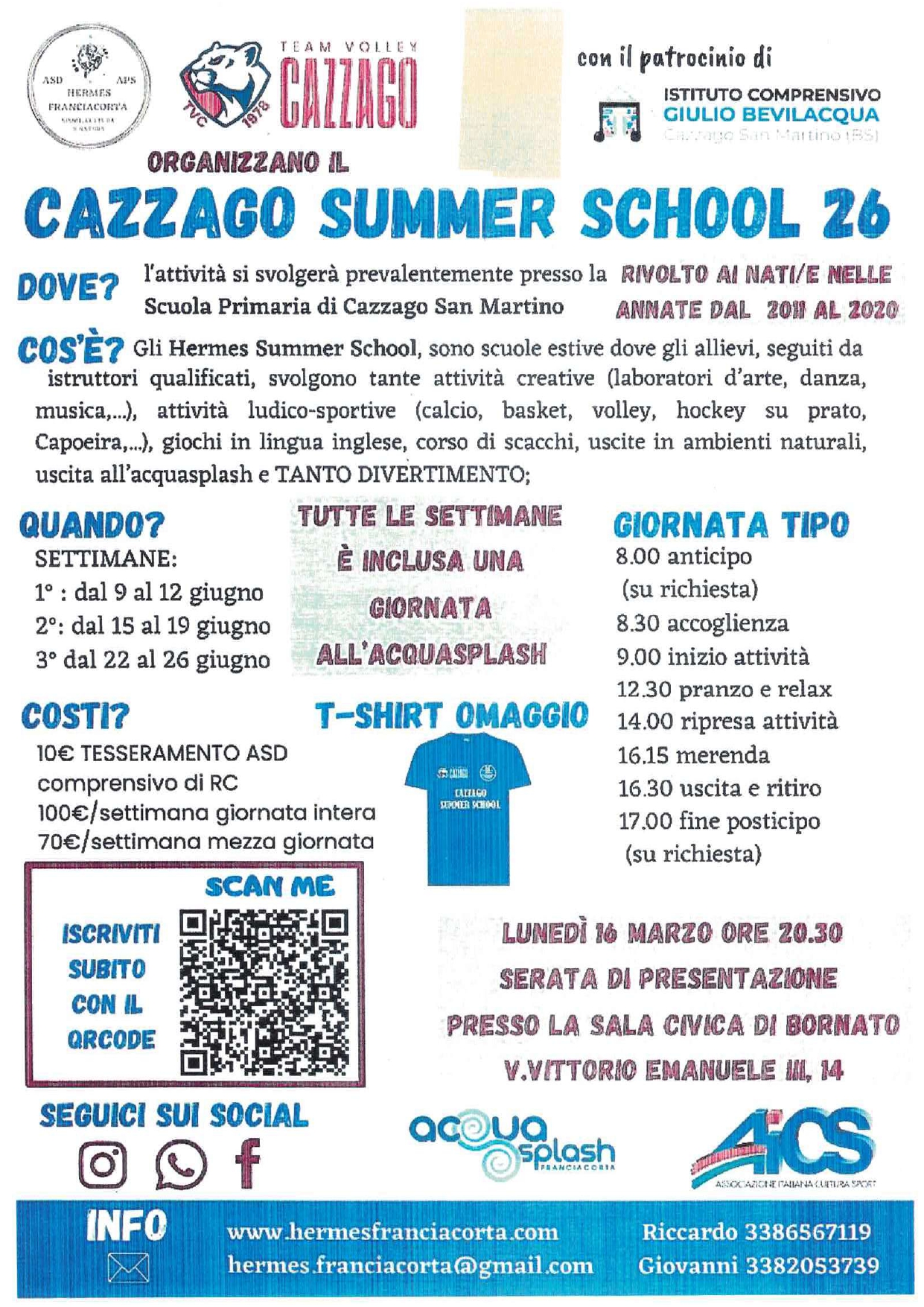 Serata di presentazione del CAZZAGO SUMMER SCHOOL : scuola estiva con attività creative, ludico-sportive, giochi in lingua, uscite in ambienti naturali e molto altro