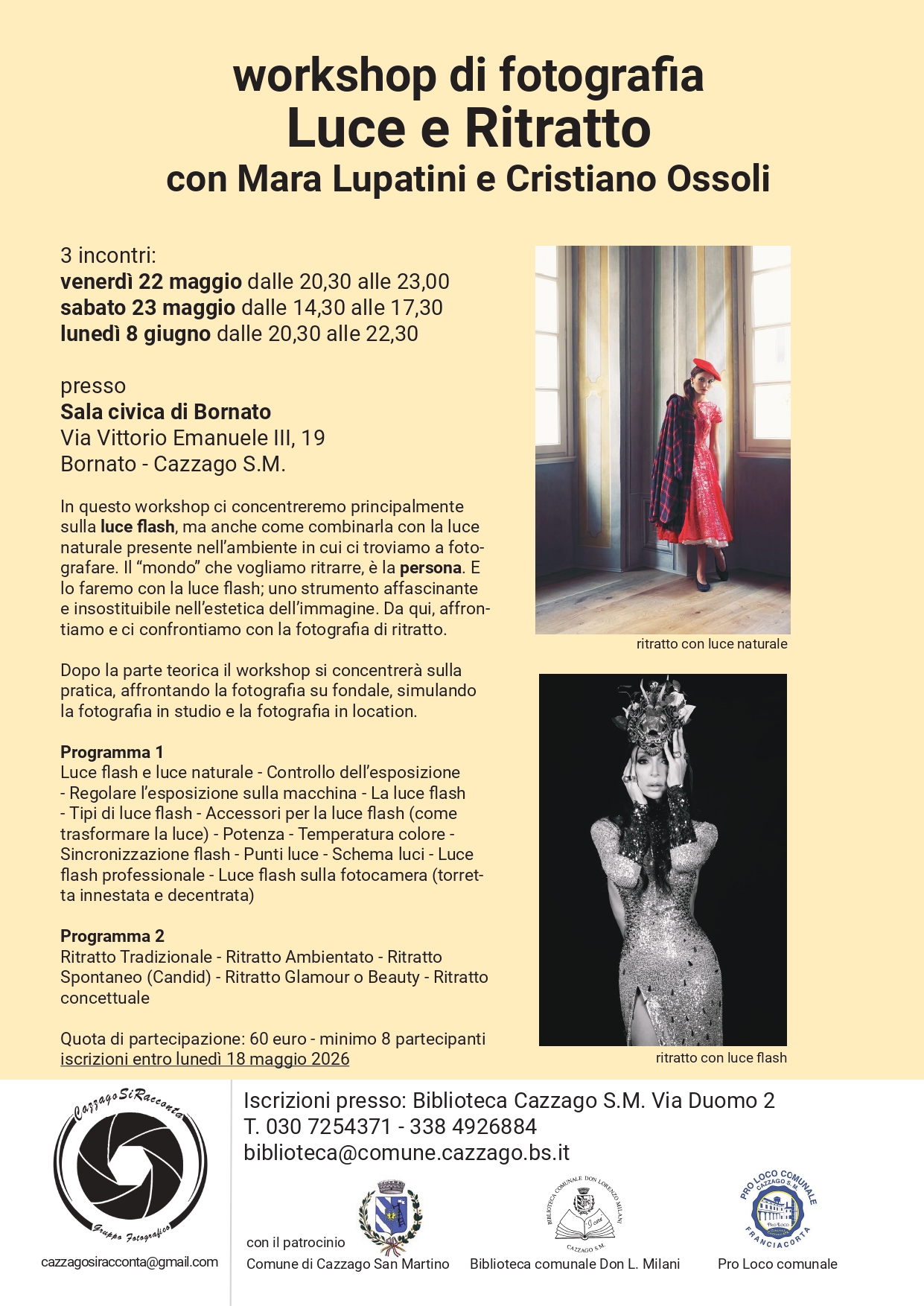 Workshop di fotografia : luce e ritratto, con Mara Lupatini e Cristiano Ossoli